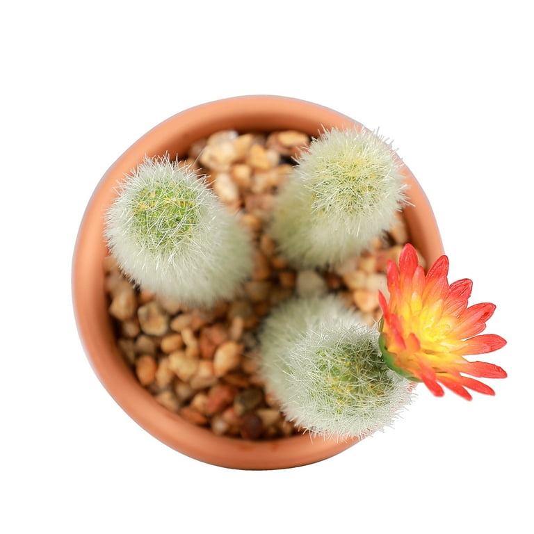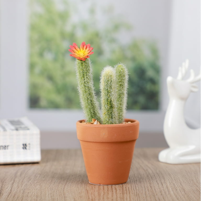 Mainstays 5 35 Artificial Potted Cactus Green With Red Orange Flower Walmart Com